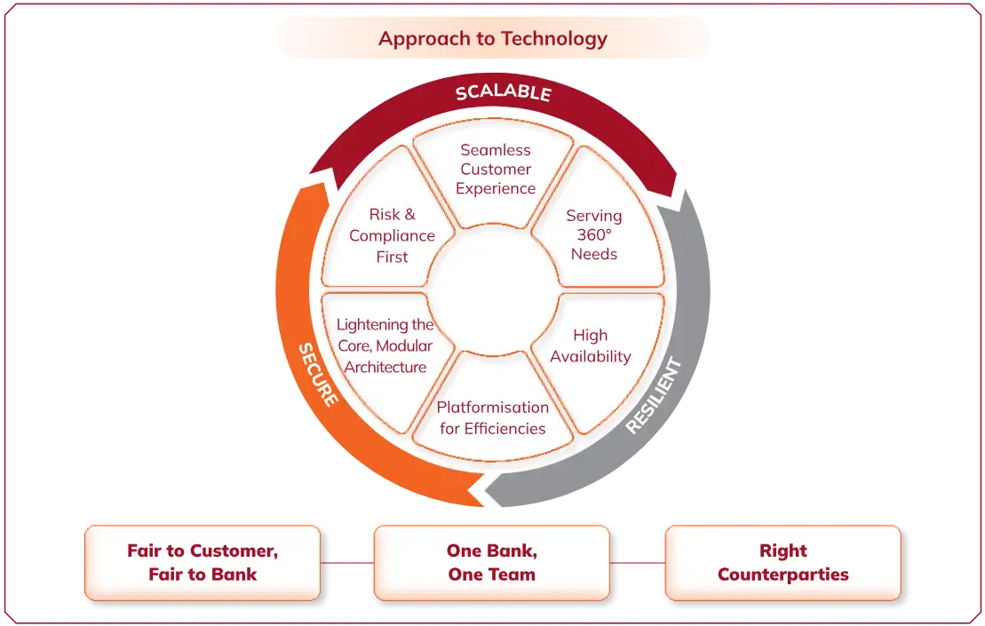 In fiscal 2025, the Bank to BankTech journey has progressed with increased focus on technology platforms, embedded banking, cloud adoption, data platform, analytics and artificial intelligence. The Bank’s efforts continue to be guided by the three pillars of scalability, resilience and security across technology solutions. The technology platforms serve the objective of adding quality customer experience.