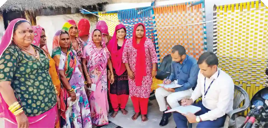 Members of an SHG in Nagaur district, Rajasthan, being informed about the various loans that they can avail through ICICI Bank.